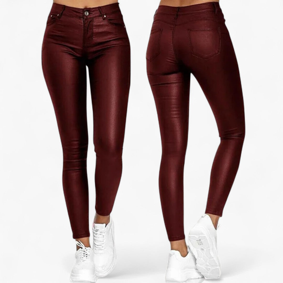 Nordisk Mode | Dame Høj Talje Læder Skinny Bukser