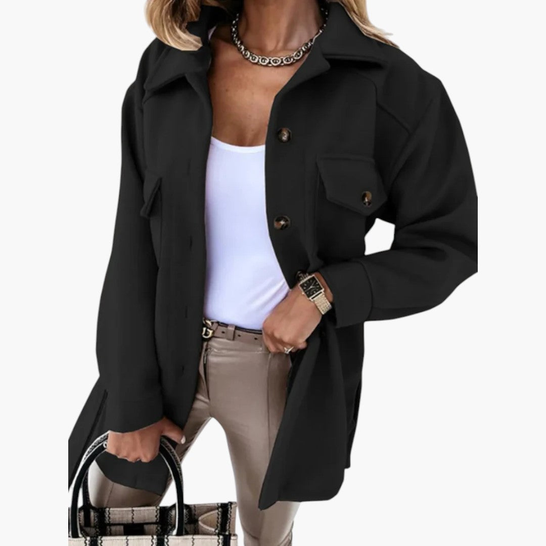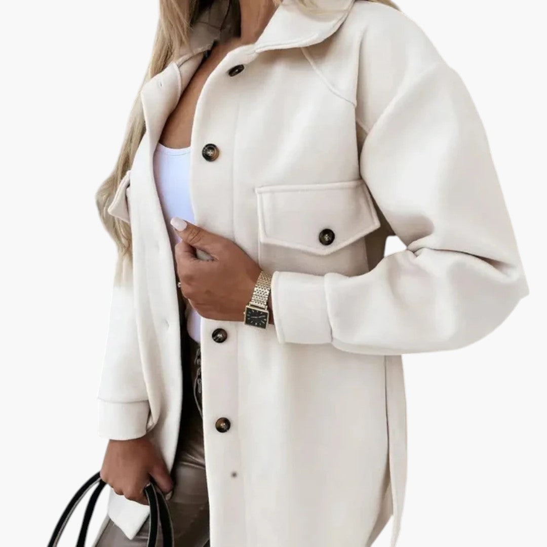 Denne damesjakke har en elegant lang pasform og leveres med et taljebælte for en flatterende silhuet. De store brystlommer og knaplukning giver et stilfuldt, praktisk udseende. Ideel til at kombinere med både formelle og afslappede outfits for et komplet look